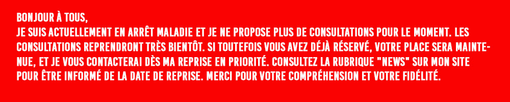 J’ai repris mon activité sur mon site internet ainsi qu’à mon cabinet. Vous pouvez dès à présent réserver en ligne vos consultations pour des soins (médecine chinoise) ou pour des séances de voyance et de médiumnité.